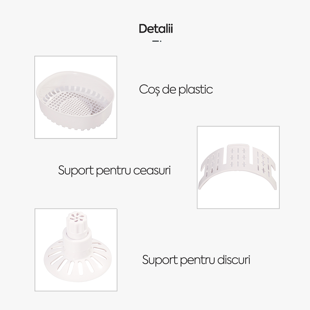 Aparat de curățare cu ultrasunete CD-7910 de la Codyson este un dispozitiv fiabil și eficient pentru spălarea și curățarea diferitelor obiecte. Datorită efectului de cavitație, aparatul curăță ușor și rapid obiectele de diverse impurități. În pachet sunt incluse un coș, un suport de plastic pentru ceasuri și un suport pentruCD-uri. Aparatul este perfect pentru curățarea instrumentelor medicale, de manichiură și stomatologice, a bijuteriilor, precum și a componentelor electronice. În același timp, aparatul curăță cu ușurință obiecte cu forme complexe și elimină murdăria din locurile greu accesibile. Datorită efectului de cavitație, după îndepărtarea murdăriei, instrumentele de manichiură nu se vor toci, iar apariția deteriorărilor mecanice este exclusă. Echipat cu un afișaj digital și control de setări, aparatul cu ultrasunete CD-7910 dispune de un temporizator cu 5 setări: 1.5, 3, 4.5, 6 sau 8 minute. Carcasa dispozitivului este realizată din plastic ABS, iar vasul de curățare cu un volum de 750 ml este din oțel inoxidabil rezistent la coroziune tip SUS304.