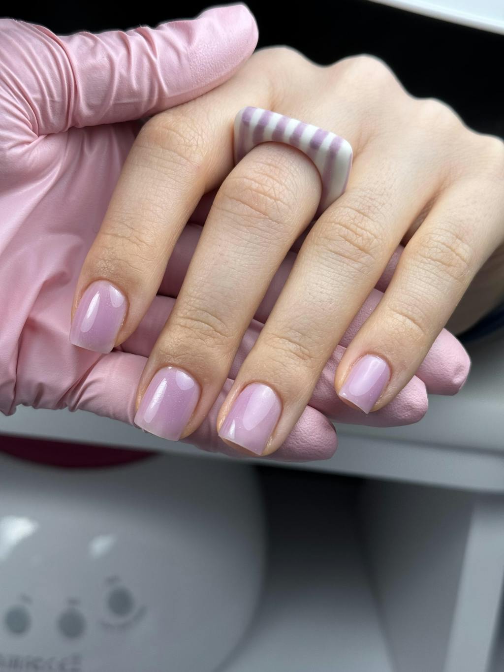 - Se pregătesc unghiile corespunzător- se realizează manichiura, se pilește suprafața unghiilor cu pila de 180/240 grit, se degresează unghiile cu nail cleaner