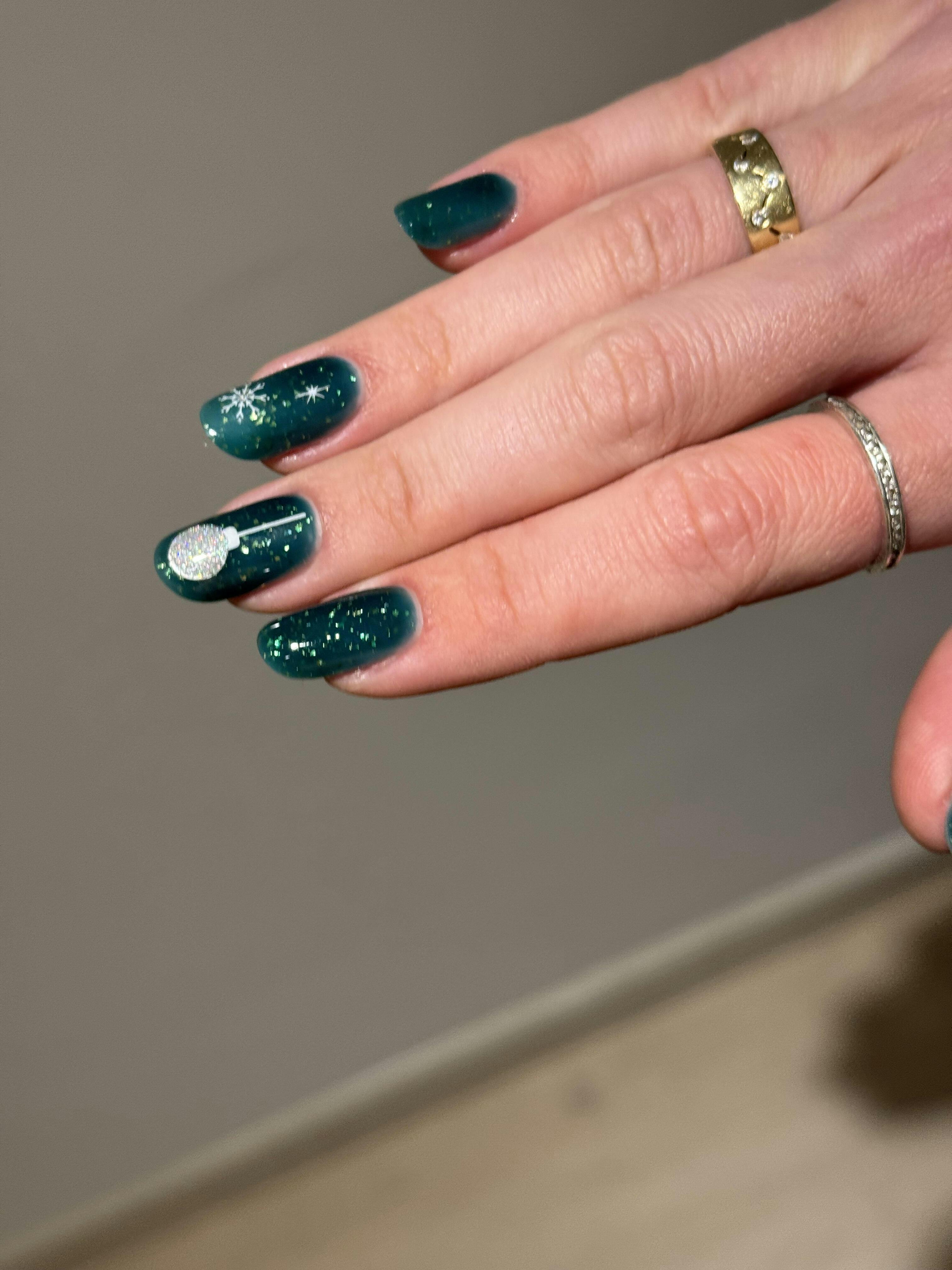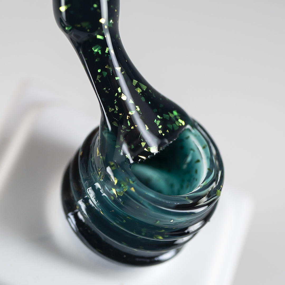 Consistența medie permite o aplicare rapidă, datorită gradului mare de autonivelare, iar folia aurie are o textură fină, care nu rămâne pe pensulă și se distribuie perfect pe unghie, fără a crea denivelări.