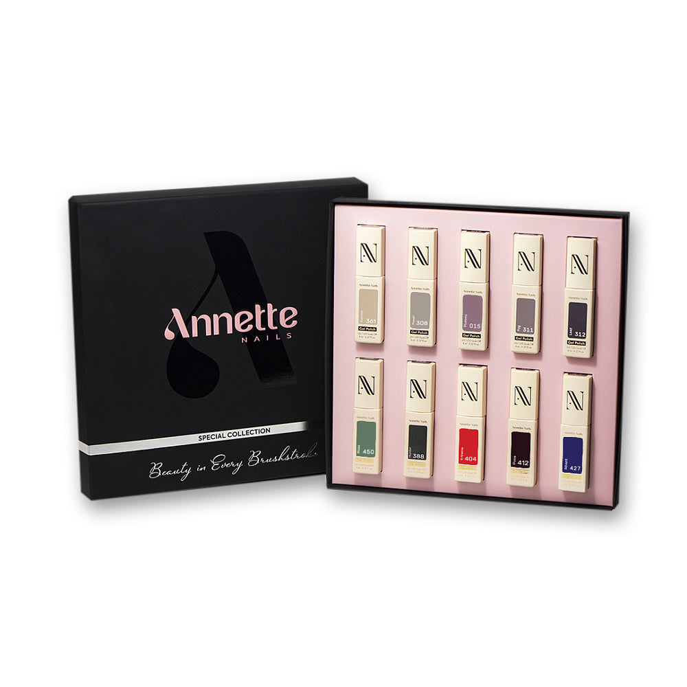 Ojele semipermanente Annette Nails au o textură cremoasă și conțin microparticule, datorită cărora se nivelează ușor, fără scurgeri sau uniformități pe laterale sau vârf. Ojele se pot aplica fie peste baza rubber (sistemul soak off), fie peste materialele dure precum (gel, acrygel/polygel).
