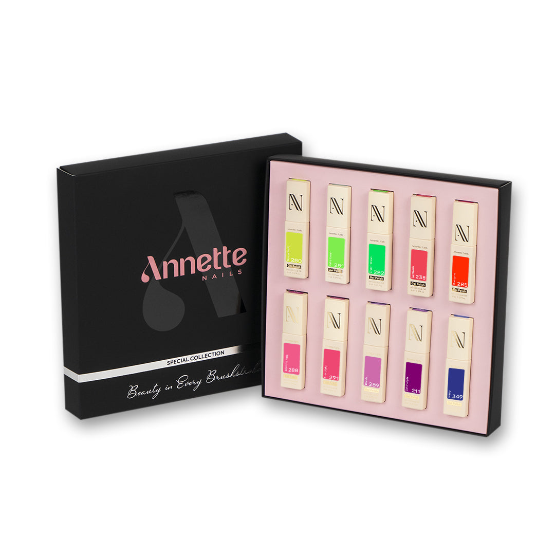 Ojele semipermanente AnnetteNails au o textură cremoasă și conțin microparticule, datorită cărora se nivelează ușor, fără scurgeri sau uniformități pe laterale sau vârf. Ojele se pot aplica fie peste baza rubber (sistemul soak off), fie peste materialele dure precum (gel, acrygel/polygel).