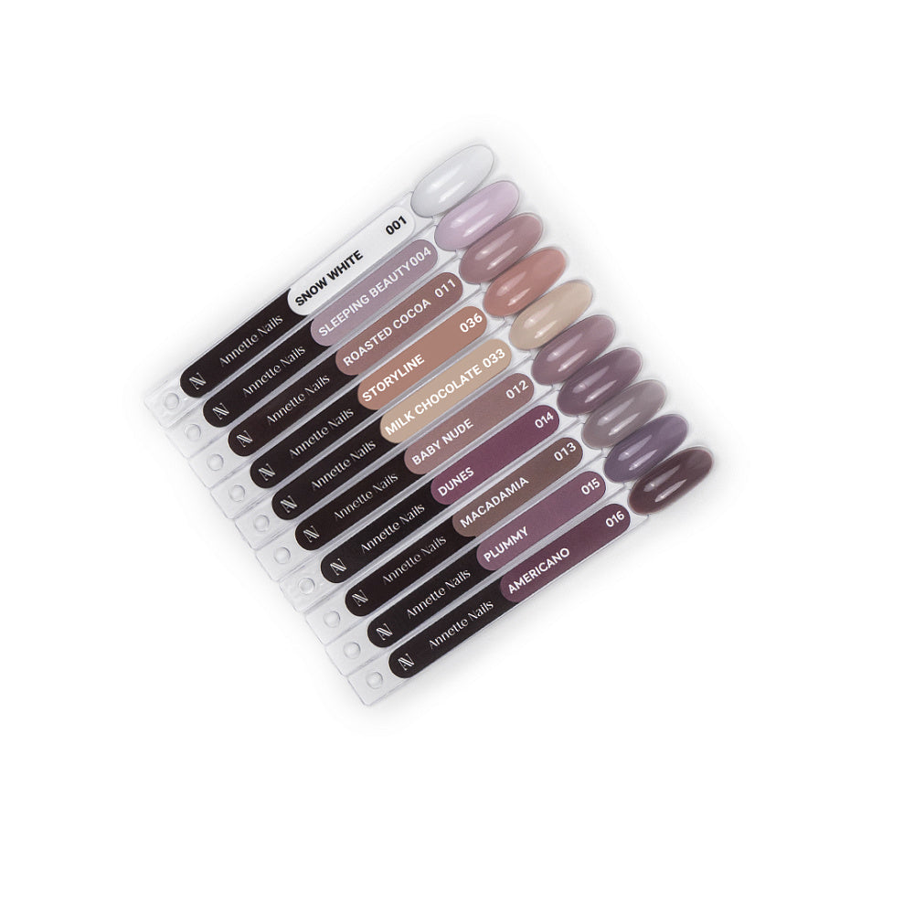 Ojele semipermanente AnnetteNails au o textură cremoasă și conțin microparticule, datorită cărora se nivelează ușor, fără scurgeri sau uniformități pe laterale sau vârf. Ojele se pot aplica fie peste baza rubber (sistemul soak off), fie peste materialele dure precum (gel, acrygel/polygel).