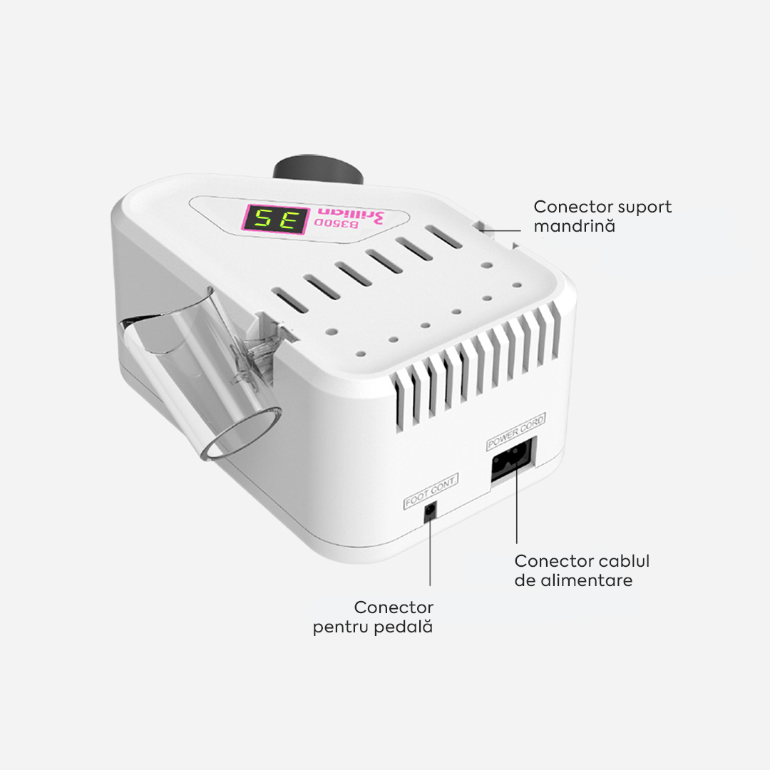 • Viteza de rotație: max. 35.000 rpm - viteza ideală, recomandată pentru procedurile de manichiură și potrivită inclusiv pentru pedichiură;