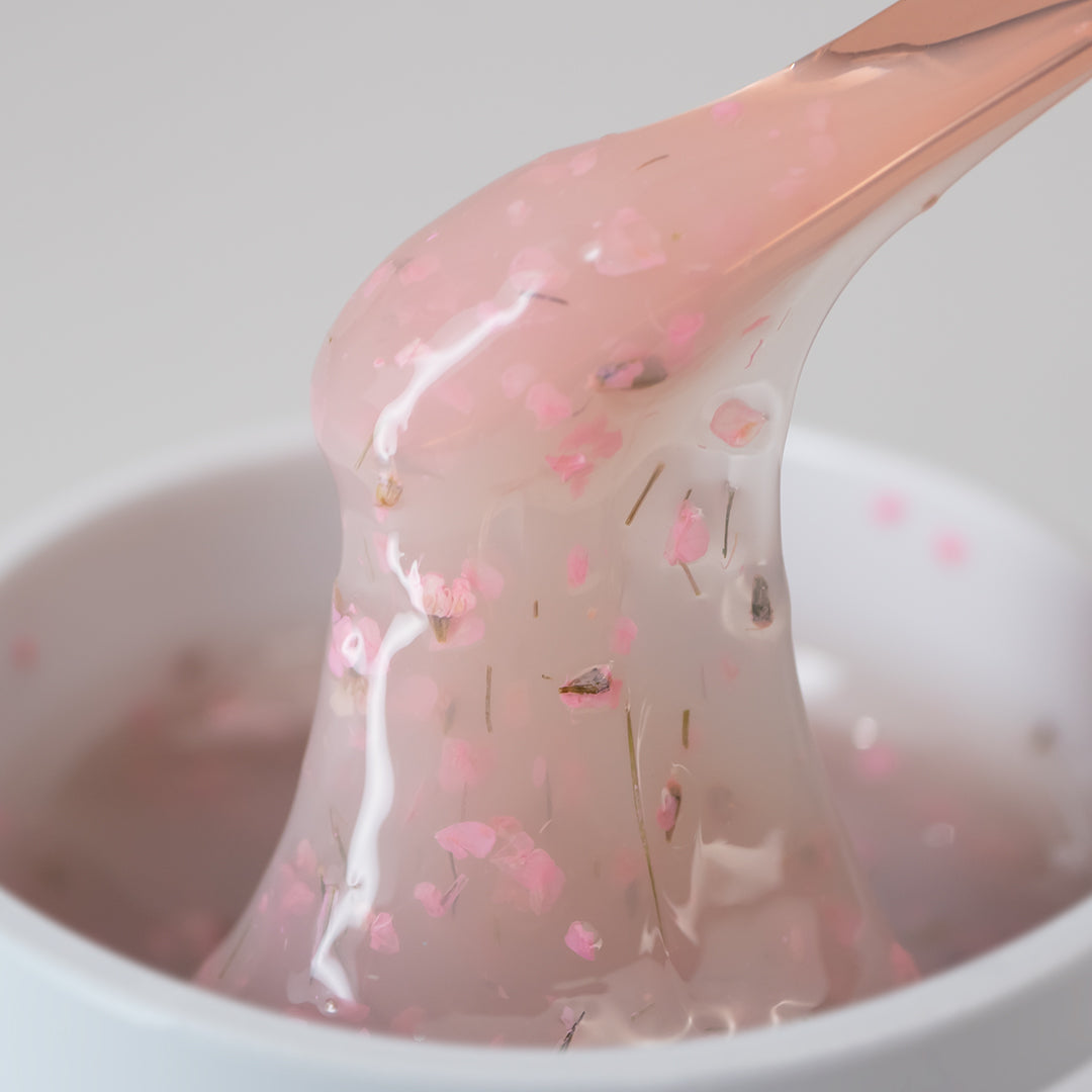 Gelul se distribuie uniform, se autonivelează ușor și oferă control excelent în timpul aplicării. Florile naturale au fost atent selectate și integrate uniform în masa gelului, astfel încât să adere perfect la placa unghială, fără a se ridica după pilire și fără a se depune pe fundul borcanului. În cazul în care gelul a fost depozitat o perioadă mai lungă, se recomandă amestecarea delicată înainte de utilizare, pentru o omogenizare completă, evitând formarea de bule.
