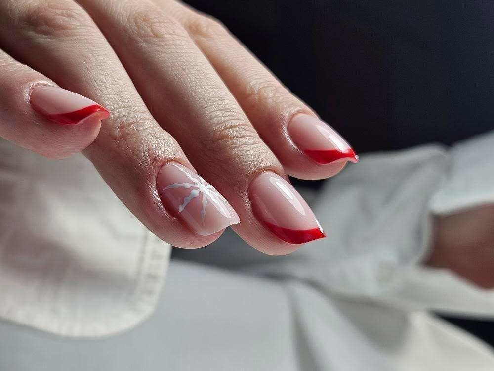 2. În cazul șablonului, aplicați gelul într-un strat subțire, creând marginea liberă și polimerizați-l în lampa UV – 90 sec / LED– 60 sec. În cazul tipsului, distribuiți materialul uniform, având grijă să nu plasați surplus de material în zona care se va atașa de cuticulă.