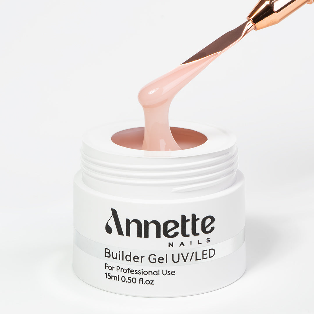 Gelul de construcție Half Clear Annette Nails are o formulă inovatoare, ce conferă durabilitate și flexibilitate adaptată grosimii stratului aplicat. În strat subțire, gelul devine flexibil, prevenind exfolierea la nivelul cuticulelor și protejând vârfurile unghiilor de șocuri. În strat mai gros, gelul devine rigid, întărind eficient zona de stres și asigurând protecție suplimentară, chiar și pentru unghiile de lungime extremă. Această combinație optimă de rigiditate și elasticitate după polimerizare garantează unghii durabile și subțiri, fără a compromite aspectul natural al unghiilor și fără a crea un volum neplăcut. Gelul păstrează perfect curba C și arhitectura unghiei până la următoarea întreținere, fără fisuri sau deformări ale materialului.