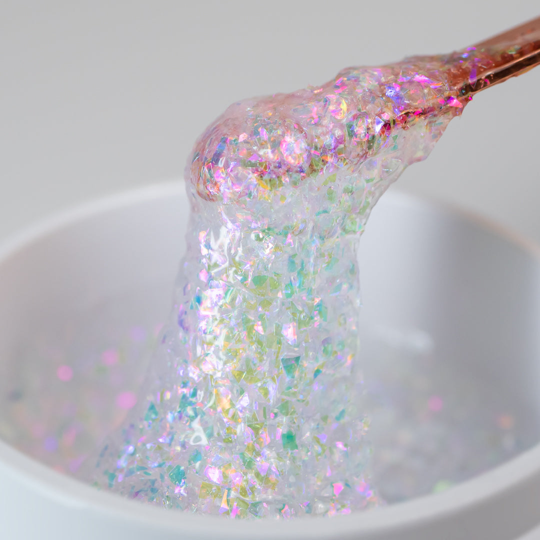 Îmbogățit cu fulgi reflectorizanți colorați, de diferite mărimi, pentru un efect unic de profunzime și strălucire multidimensională;