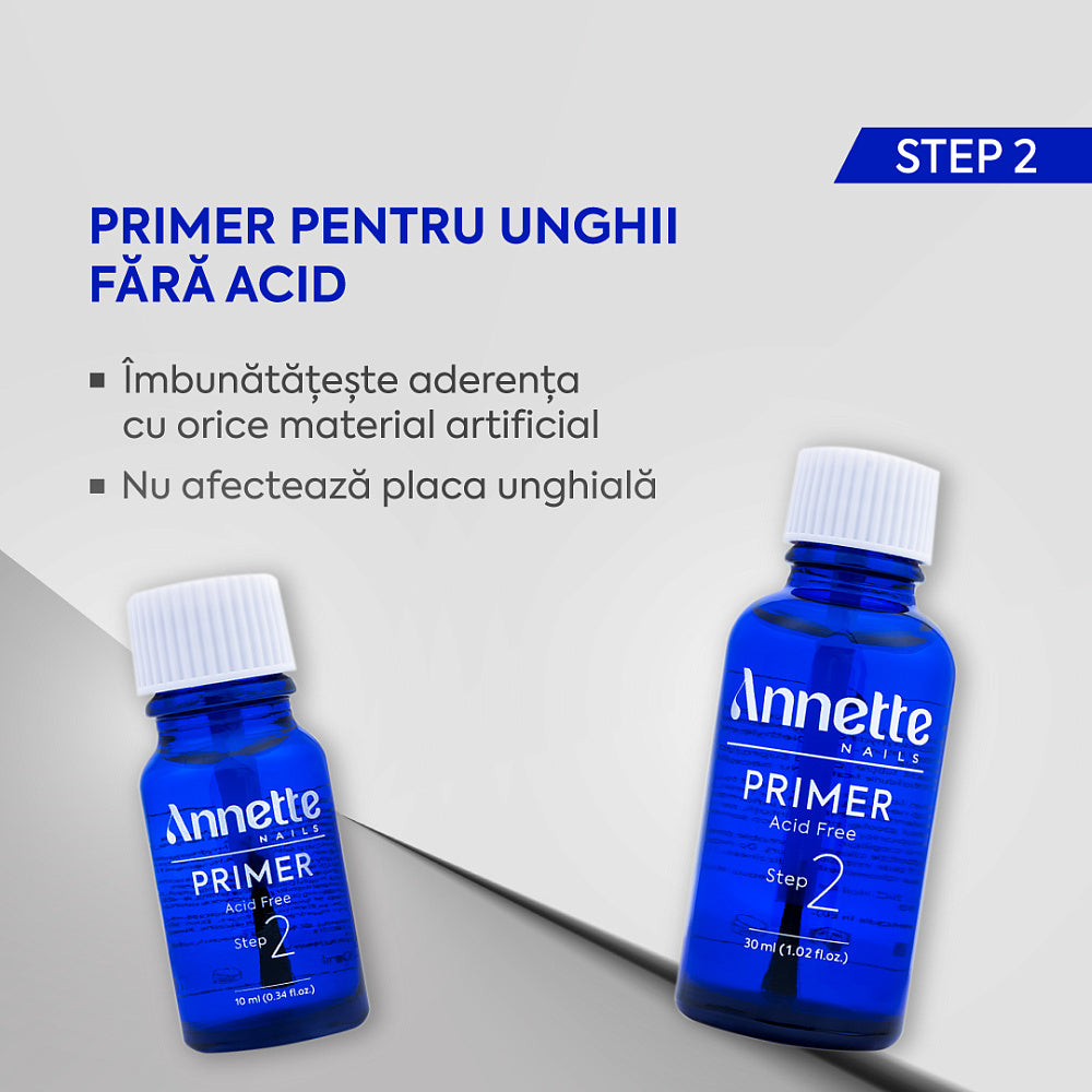 Primer Fără Acid Annette Nails este al doilea pas esențial, ce creează un strat de aderență puternic între unghia naturală și materialele tehnice. Formula sa blândă, fără acid, îl face ideal pentru unghiile fragile sau deteriorate.