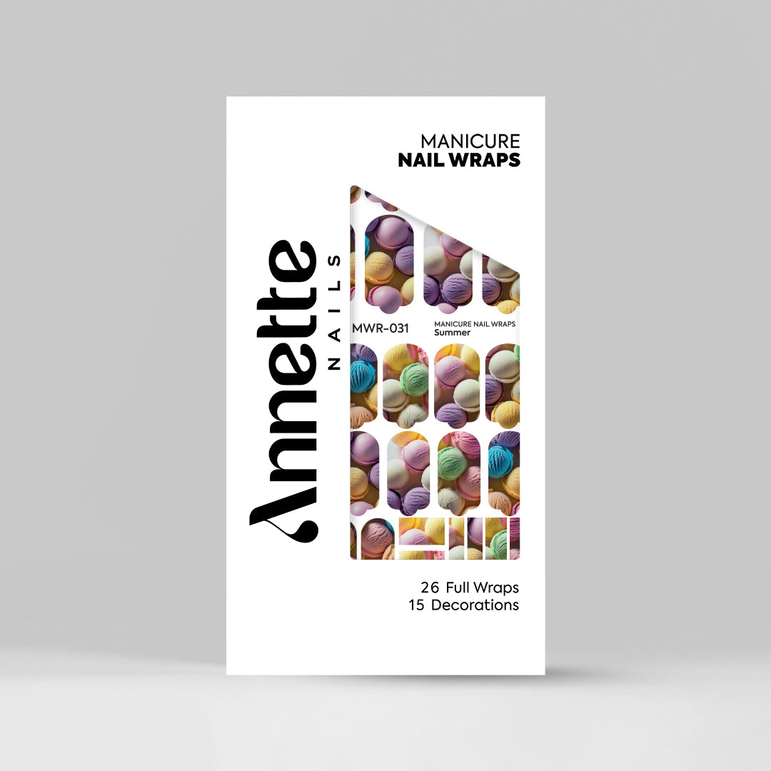 Manicure Nail Wraps Annette Nails sunt stickere autoadezive pentru unghii, special concepute pentru crearea designurilor sofisticate pe unghii, indiferent de tehnica folosită: manichiură clasică, manichiură semipermanentă, unghii tehnice. Wrapurile sunt una dintre cele mai populare tehnici pentru decorarea unghiilor și reprezintă o alternativă rapidă și eficientă la manichiura cu oja semipermanentă. Acestea pot fi utilizate inclusiv pentru uz personal, oferind fiecărei femei posibilitatea de a-și realiza singură o manichiură cu design deosebit și rezistență extinsă.Datorită varietății de modele și compoziții grafice, cu ajutorul wrapurilor se pot obține designuri inedite și expresive, pentru ocazii speciale sau manichiuri discrete și elegante, pentru manichiura de zi cu zi.
