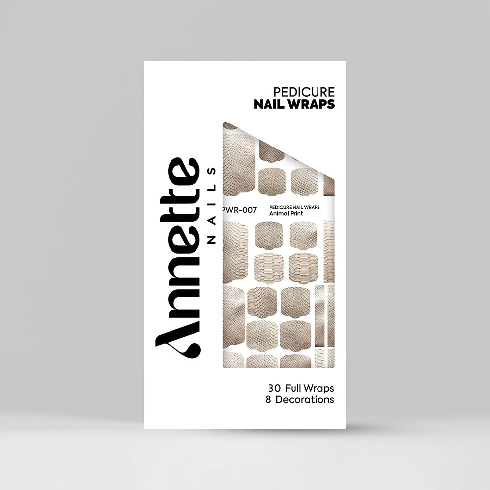 Pedicure Nail Wraps Annette Nails sunt stickere autoadezive pentru unghii, special concepute pentru crearea designurilor sofisticate pe unghii, indiferent de tehnica folosită: pedichiură clasică sau pedichiură semipermanentă. Wrapurile sunt una dintre cele mai populare tehnici pentru decorarea unghiilor și reprezintă o alternativă rapidă și eficientă la pedichiura cu oja semipermanentă. Acestea pot fi utilizate inclusiv pentru uz personal, oferind fiecărei femei posibilitatea de a-și realiza singură o pedichiură cu design deosebit și rezistență extinsă.Datorită varietății de modele și compoziții grafice, cu ajutorul wrapurilor se pot obține designuri inedite și expresive, pentru ocazii speciale sau modele discrete și elegante, pentru pedichiura de zi cu zi.
