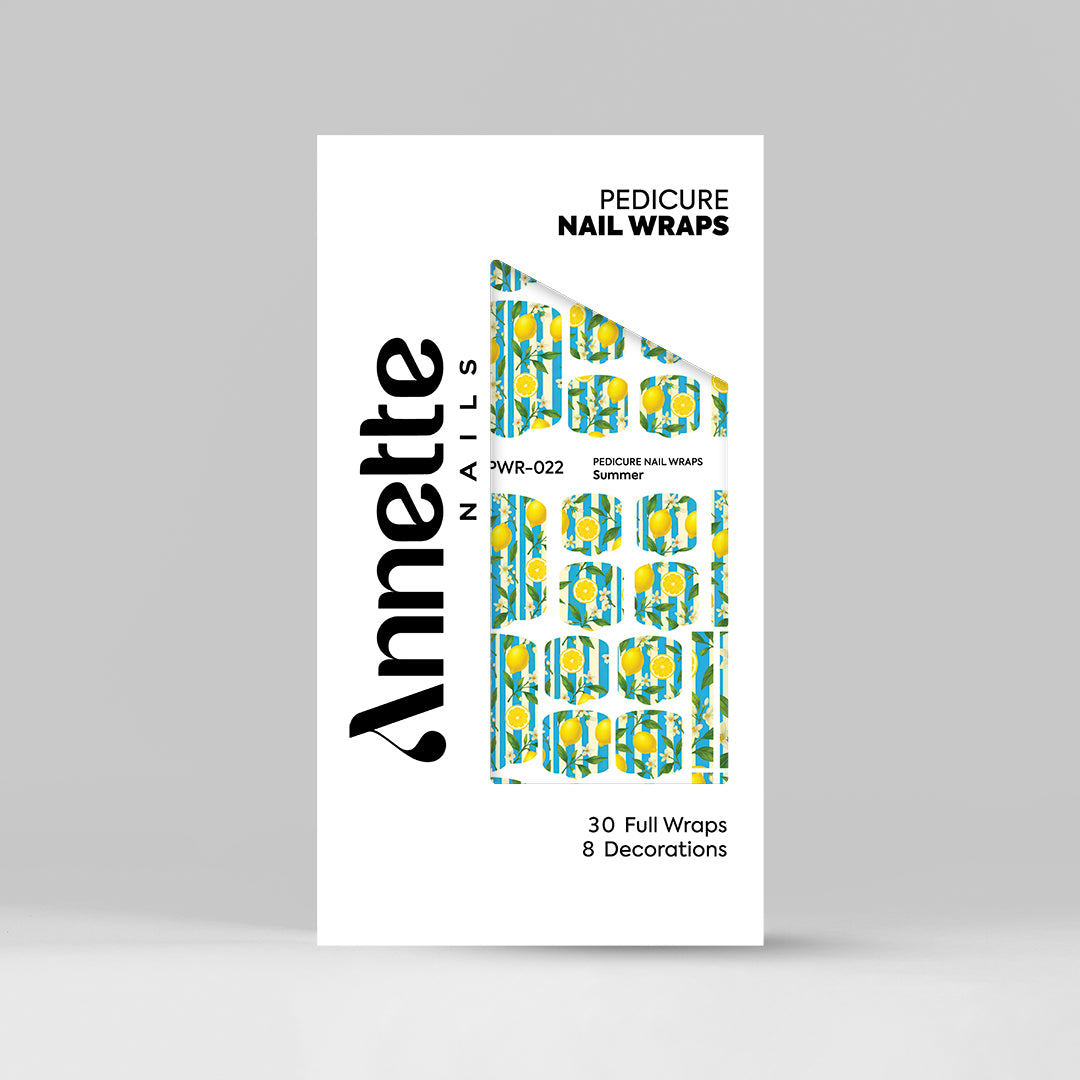 Pedicure Nail Wraps Annette Nails sunt stickere autoadezive pentru unghii, special concepute pentru crearea designurilor sofisticate pe unghii, indiferent de tehnica folosită: pedichiură clasică sau pedichiură semipermanentă. Wrapurile sunt una dintre cele mai populare tehnici pentru decorarea unghiilor și reprezintă o alternativă rapidă și eficientă la pedichiura cu oja semipermanentă. Acestea pot fi utilizate inclusiv pentru uz personal, oferind fiecărei femei posibilitatea de a-și realiza singură o pedichiură cu design deosebit și rezistență extinsă.