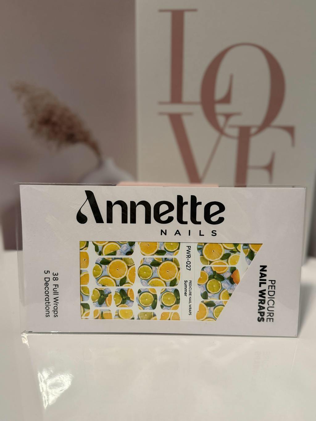 Pedicure Nail Wraps Annette Nails sunt stickere autoadezive pentru unghii, special concepute pentru crearea designurilor sofisticate pe unghii, indiferent de tehnica folosită: pedichiură clasică sau pedichiură semipermanentă. Wrapurile sunt una dintre cele mai populare tehnici pentru decorarea unghiilor și reprezintă o alternativă rapidă și eficientă la pedichiura cu oja semipermanentă. Acestea pot fi utilizate inclusiv pentru uz personal, oferind fiecărei femei posibilitatea de a-și realiza singură o pedichiură cu design deosebit și rezistență extinsă.