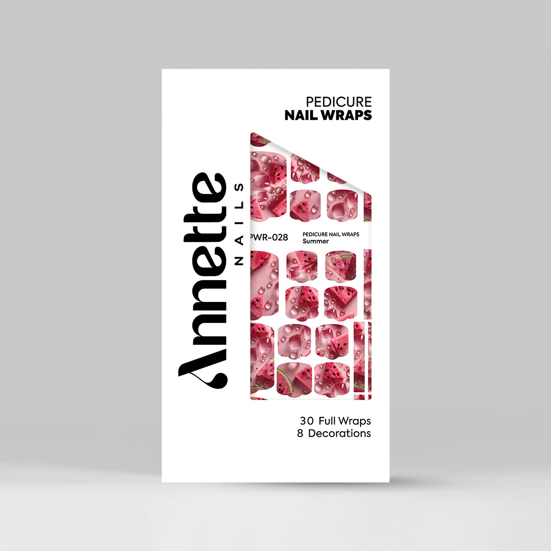 Pedicure Nail Wraps Annette Nails sunt stickere autoadezive pentru unghii, special concepute pentru crearea designurilor sofisticate pe unghii, indiferent de tehnica folosită: pedichiură clasică sau pedichiură semipermanentă. Wrapurile sunt una dintre cele mai populare tehnici pentru decorarea unghiilor și reprezintă o alternativă rapidă și eficientă la pedichiura cu oja semipermanentă. Acestea pot fi utilizate inclusiv pentru uz personal, oferind fiecărei femei posibilitatea de a-și realiza singură o pedichiură cu design deosebit și rezistență extinsă.