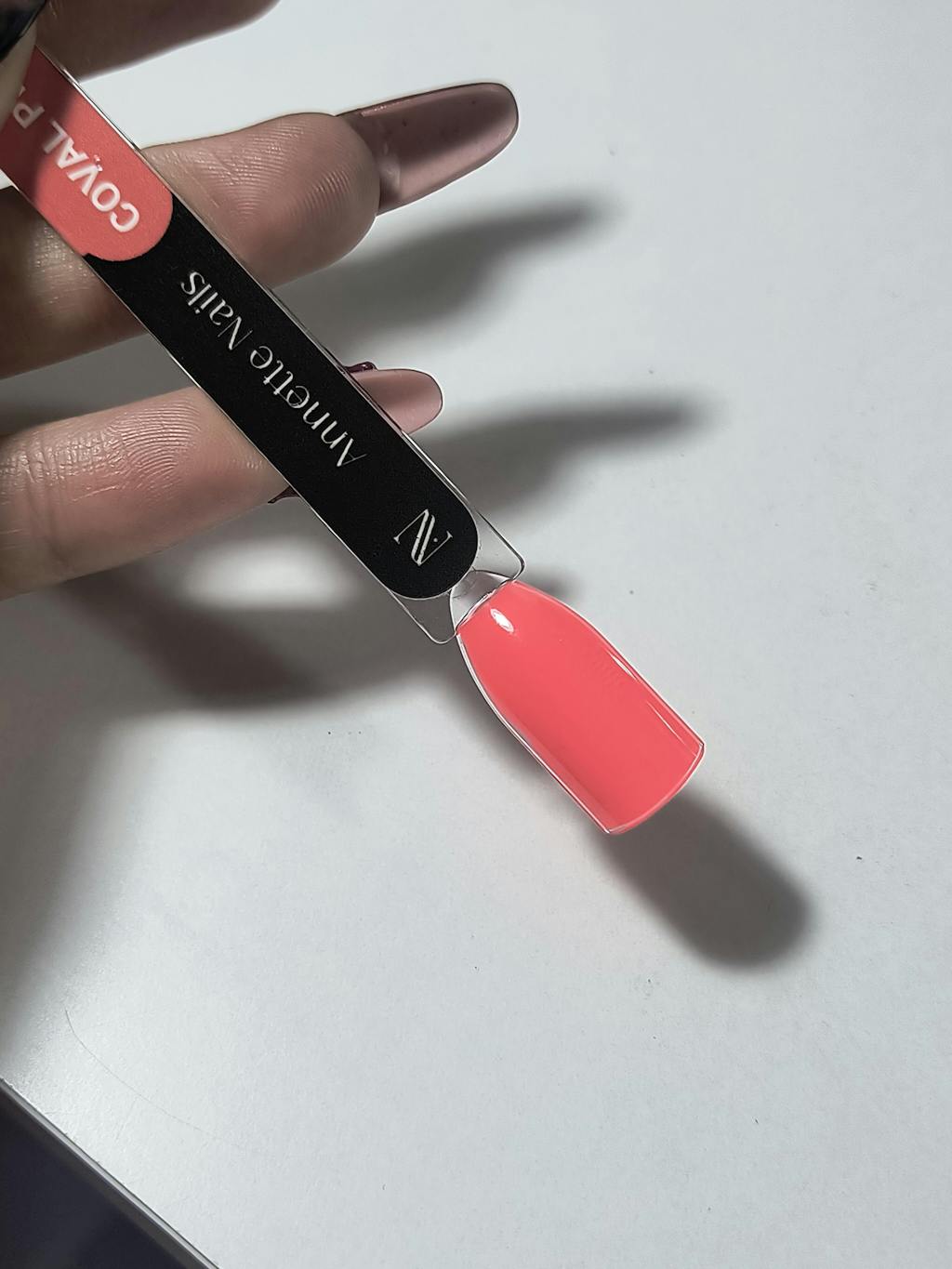 - Se realizează protecția pe unghii din orice bază rubber din colecția AnnetteNails, respectând tehnologia de aplicare (strat de alunecare și crearea apexului), se polimerizează 60 sec în lampă Led sau 2 min în lampă UV .