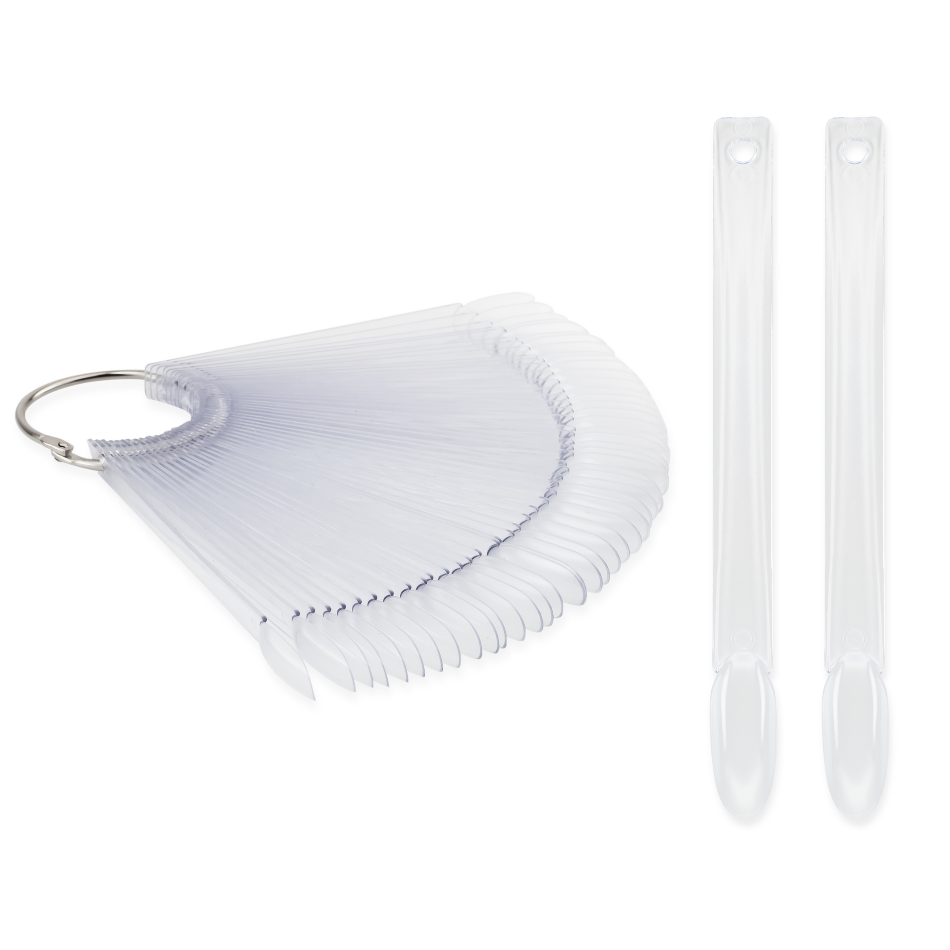 Paletarul cu 50 Tipsuri Transparente Ovale este instrumentul ideal pentru prezentarea culorilor disponibile, dar și a modelelor realizate.