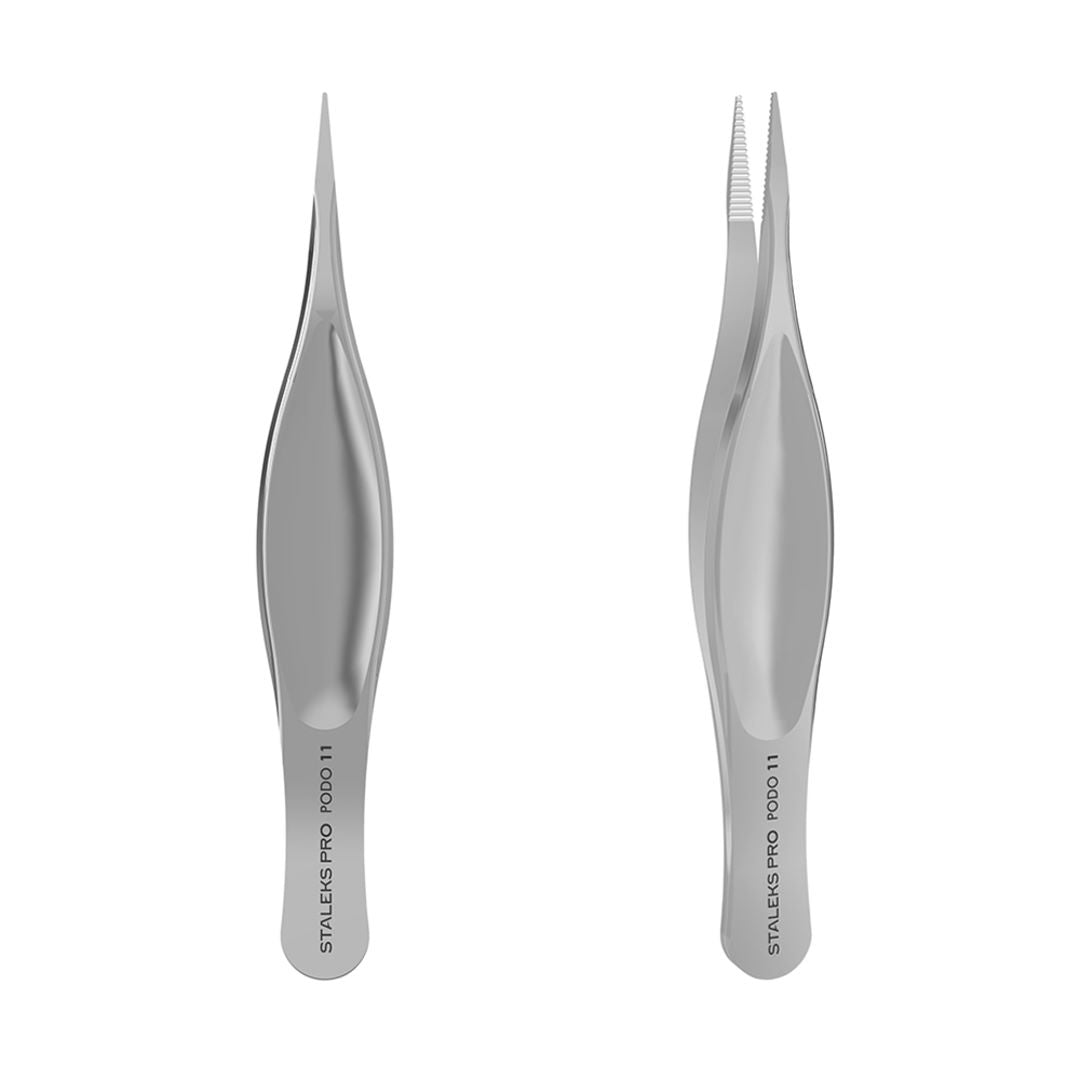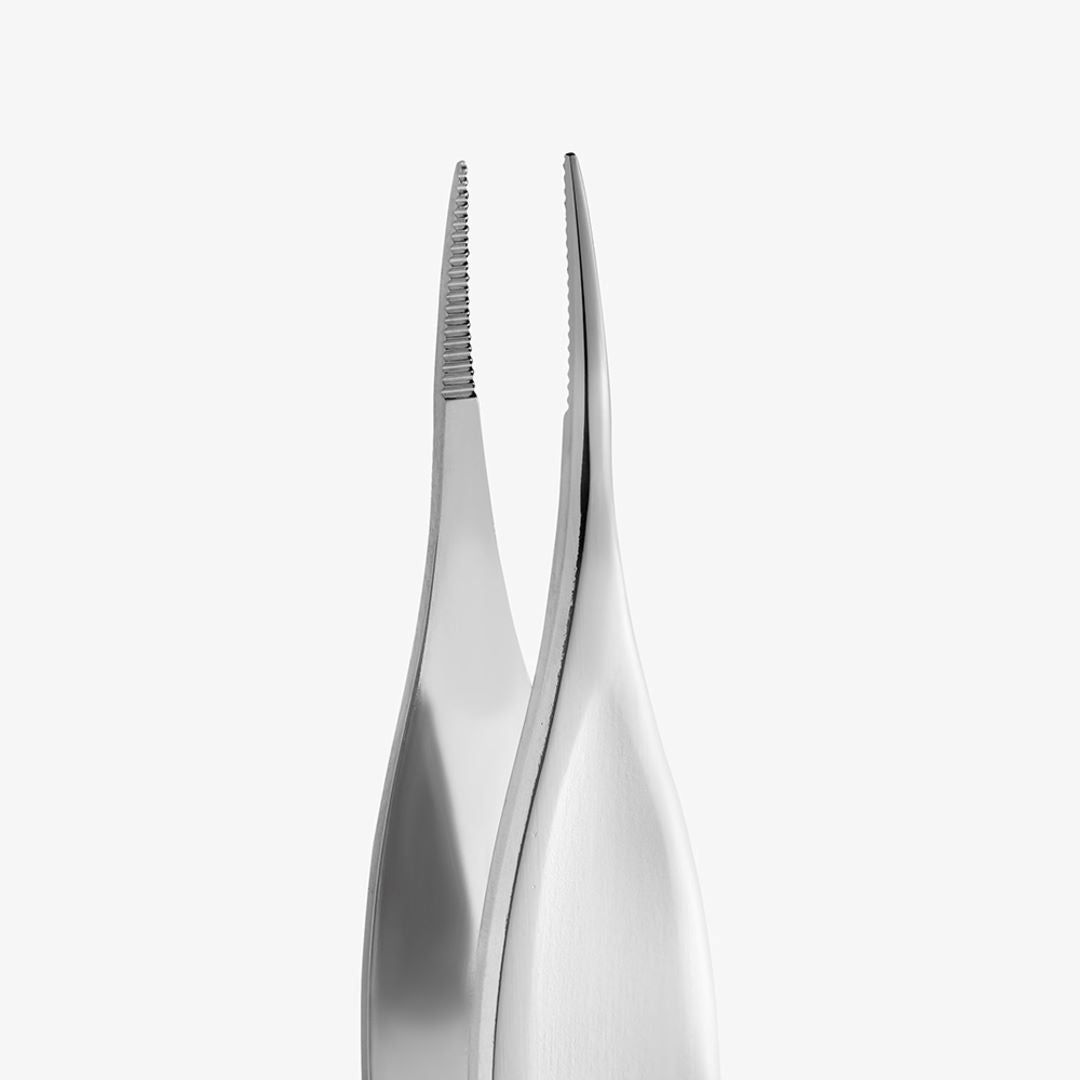 Are părți de lucru subțiri și lungi, cu crestături care captează și țin în mod fiabil chiar și cele mai mici părți ale plăcii unghiale. Potrivită pentru îndepărtarea micilor fragmente de epidermă, obiecte străine de pe răni sau creste laterale. Se potriveste confortabil in mana datorita formei ergonomice. Este fabricată din oțel inoxidabil rezistent la rugină și la toate tipurile de sterilizare și dezinfecție.Material: Oțel Inoxidabil