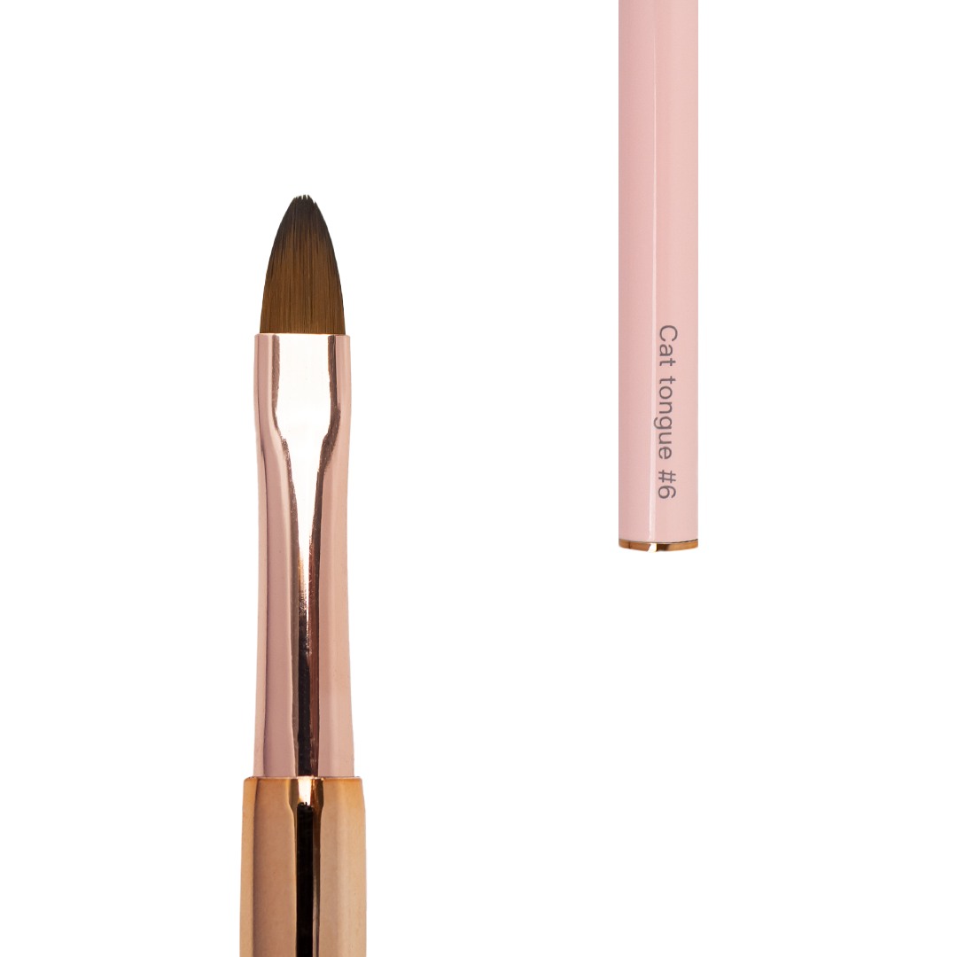 Capătul Limbă de pisică #6 este, așa cum sugerează și numele, în forma unei limbi de pisică. Acesta este prevăzut cu un vârf ascuțit și margini perfect finisate - ceea ce asigură accesibilitate în zona cuticulei. Este potrivită pentru toate tipurile de gel, pentru aplicarea pudrei acrilice și pentru realizarea picturilor pe unghii.