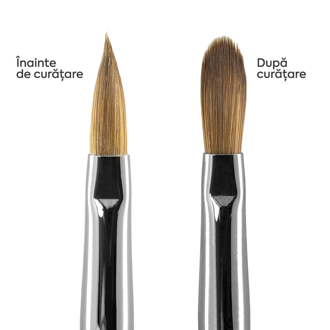 - În timpul utilizării, pensula se poate spăla în soluție specială pentru modelarea polygelului sau în monomer.