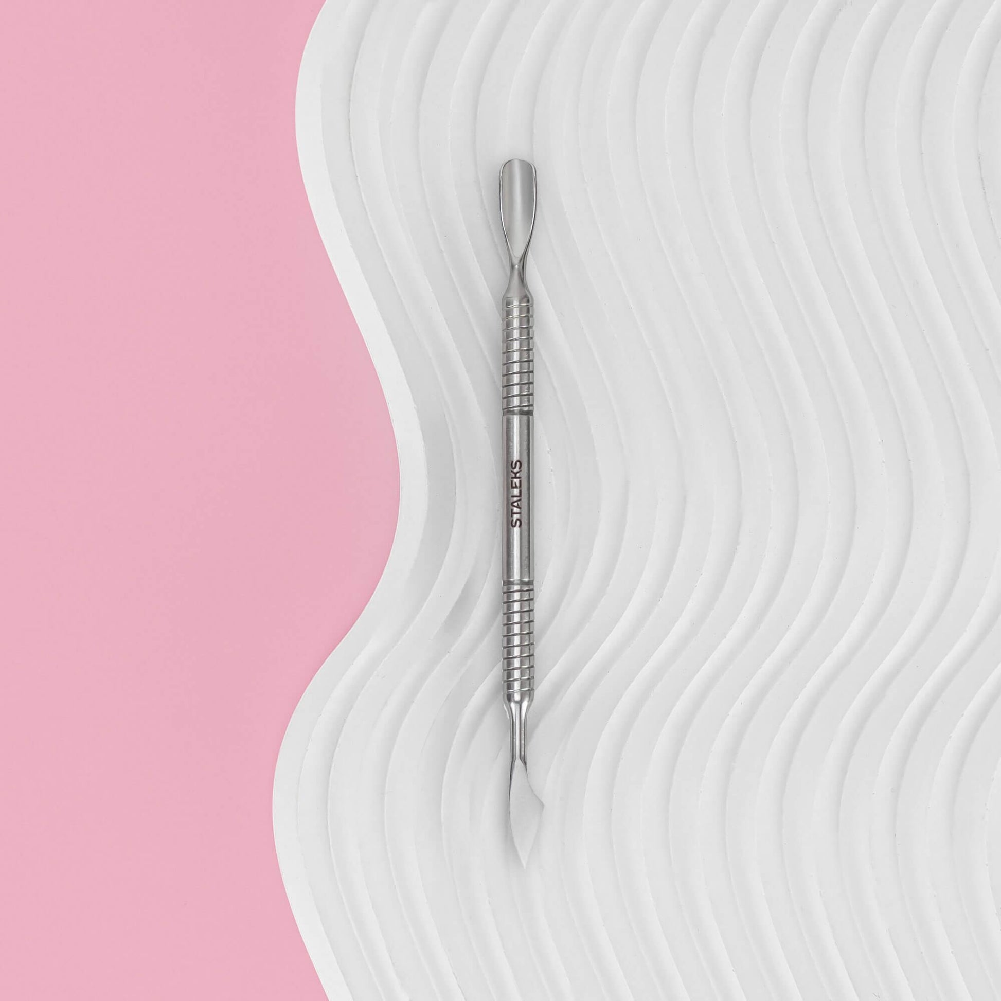 Pusherul este utilizat pentru a împinge cuticula și pentru a îndepărta resturile de cuticulă în timpul procedurii de pedichiură.Acesta are suprafață nichelată, mâner reiat, ce dispune de o formă ergonomică care facilitează uzul intens.