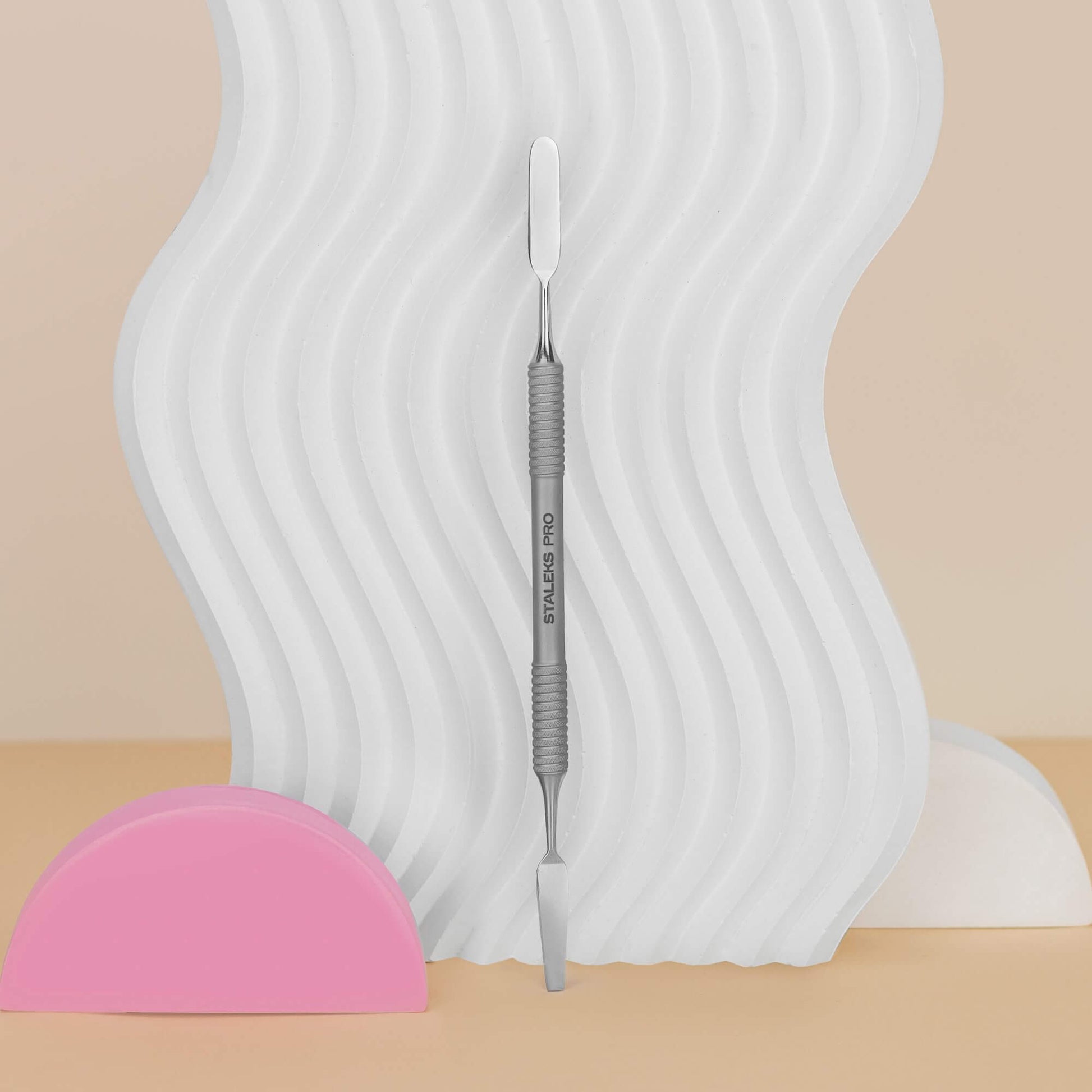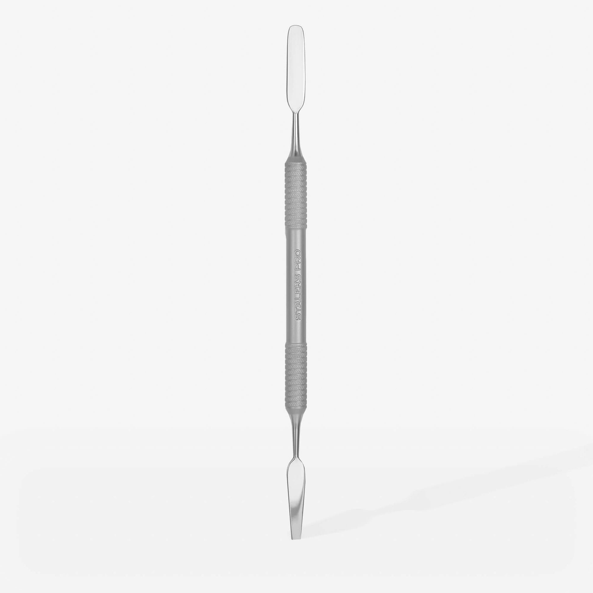 Pusherul este utilizat pentru a împinge cuticula și pentru a îndepărta resturile de cuticulă în timpul procedurii de pedichiură.Acesta are suprafață nichelată, mâner reiat, ce dispune de o formă ergonomică care facilitează uzul intens.