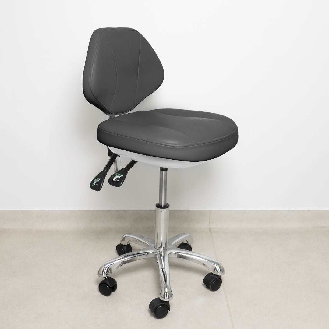 Scaunul utilizează un mecanism hidraulic pentru reglarea înălțimii: între 61 cm - 76 cm. El este dotat cu două manete care ajustează înălțimea și spătarul, cu ușurință, oferindu-vă poziția optimă în timpul procedurilor. Când apasăți o manetă, presiunea hidraulică permite modificarea înălțimii scaunului fără efort, oferind stabilitate și confort, chiar și în pozițiile mai înalte.