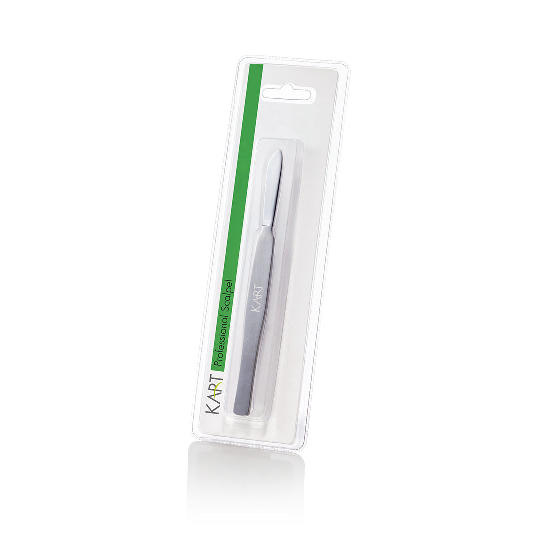Un bisturiu profesional, fără ascuțire. Un instrument esențial atunci când efectuați pedichiura Kart. Este conceput pentru a ajuta la îndepărtarea cu ușurință a pielii dizolvate în timpul tratamentului. Bisturiul este fabricat din oțel inoxidabil, ceea ce permite dezinfectarea și sterilizarea în siguranță a instrumentului după fiecare utilizare.