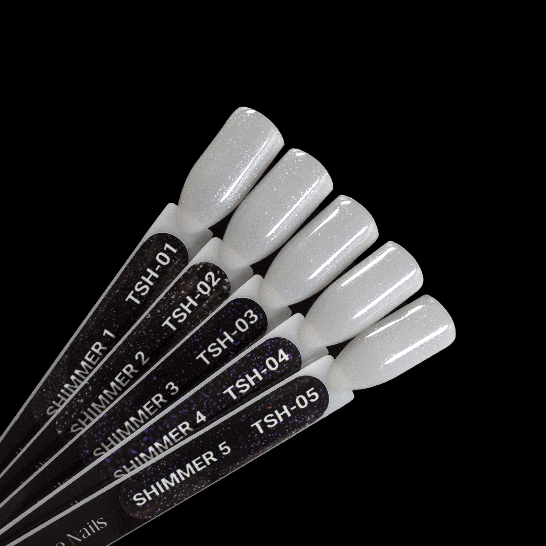 Shimmer no wipe – este un top coat decorativ, fără strat de dispersie, ce conține particule ultrafine de shimmer. Acestea au diferite reflexii în lumină – argintiu, roz, mov, albastru și oferă manichiurii o strălucire discretă. Se poate aplica atât, peste nuanțele închise, cât și pe cele deschise sau peste french. Are o consistență medie și se autonivelează rapid în procesul aplicării. Își păstrează luciul pe toată durata purtării manichiurii.