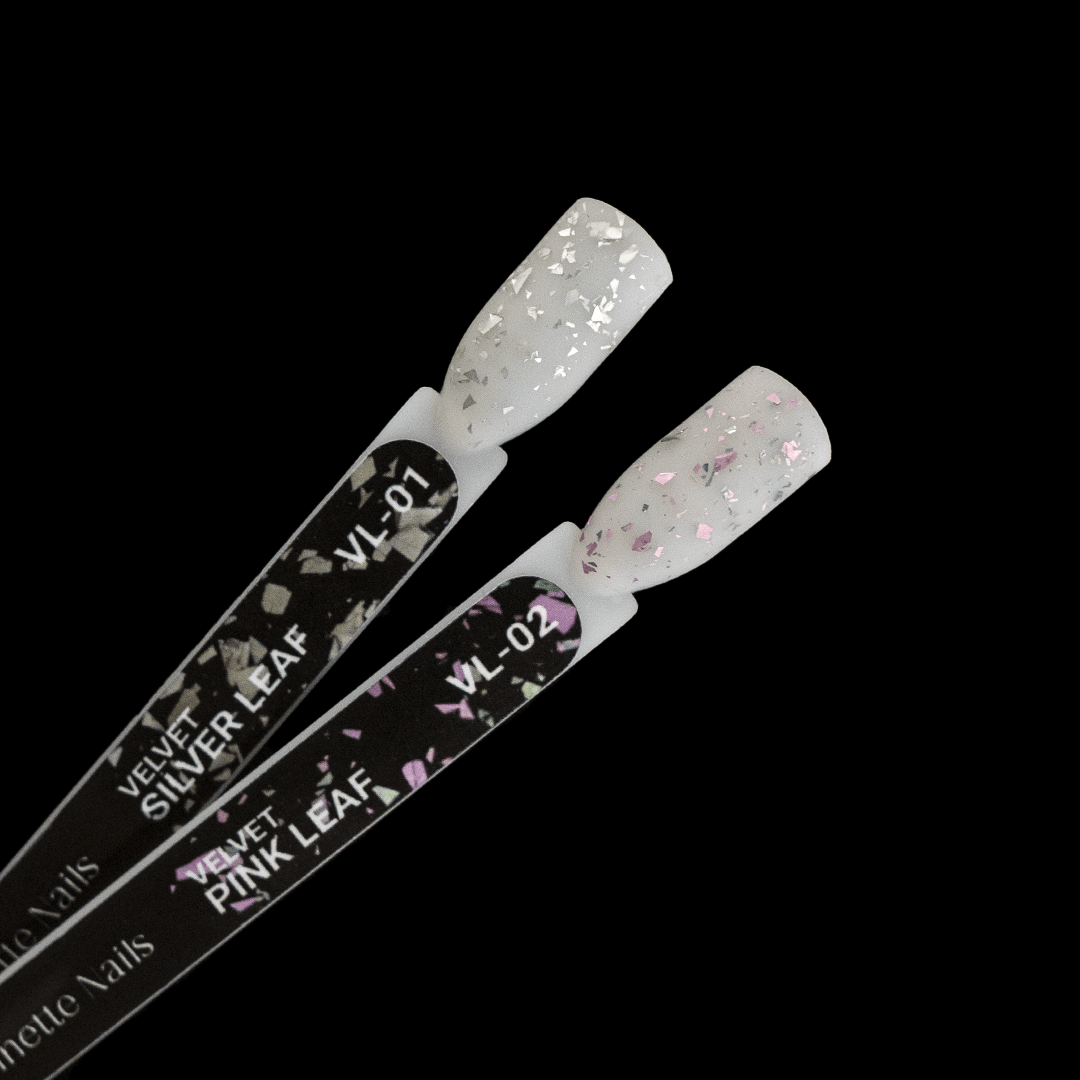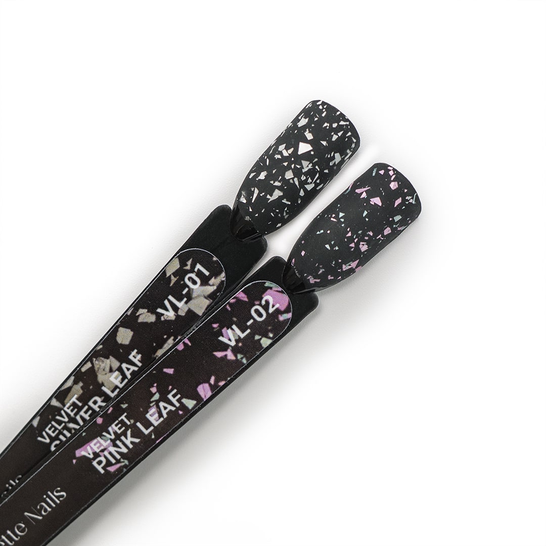 Velvet silver leaf no wipe - este un Top Mat decorativ, fără strat de dispersie, ce conține particule de folie metalică argintie. Este opțiunea perfectă pentru a obține o manichiură de efect, în cel mai scurt timp. Se poate aplica, atât pe nuanțe închise, cât și pe nuanțe deschise. Conferă unghiilor un efect de catifea, foarte plăcut la atingere. Are o consistență medie, spre lichidă și se autonivelează rapid în procesul aplicării, suprafața nu rămâne denivelată. Își păstrează efectul mat pe toată durata purtării manichiurii. Datorită texturii, suprafața rămâne curată, pentru un timp îndelungat. Pe culorile deschise, la nevoie, se recomandă curățarea unghiilor cu apă micelară pentru a îndepărta eventualele impurități.